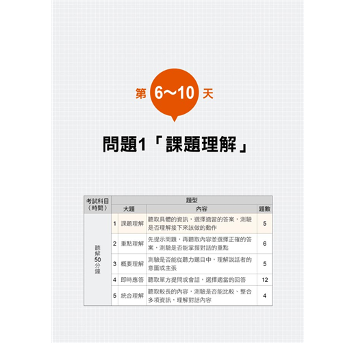 4.分5個篇章列出「聽解」科目的5大問題,並針對各個問題的考試內容、考試形式、會怎麼問一一破解。