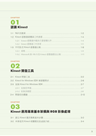 2. 本書從Kinect原理開始介紹,並逐漸深入探討各感應器主要功能以及共同合作下的應用。