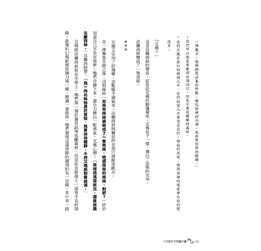就這樣,在二十多年後,我們等到另一個跨界傑作,出版社找了十四個頂尖的故事名師,來自奇幻、科幻、恐怖、劇作等文類,橫跨成人、少年、兒童文學,包括凡•艾斯伯格一起為這些畫作進行重新解碼、再編碼的工作。這些高手,解構每張圖的細碎零件,把每句圖說編入他們的字裡行間。由於他們文字精湛,心思細膩,以至於布局充滿心機,讀者就像掉進一只萬花筒裡,面對眼前一幕幕由文字圖畫交織出來的情節畫面,幾乎應接不暇、難以喘息,只要你眨個眼、轉個身,另一個情境又撲向你而來。