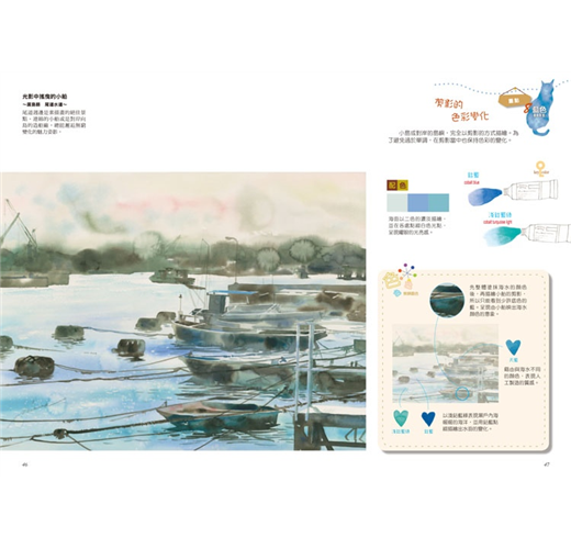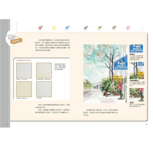 「映入眼簾的繽紛色彩是每一天生活中的幸福。春柳的嫩芽新綠、盛夏白雲下的涼爽、秋季蜻蜓的背影、寒冬的海水藍...。由大自然衍生千變萬化的色彩,隨著四季更迭,在這個美麗的世界延展開來。水彩畫宛如交響詩般撥弄著各種音色,編寫成一篇篇美麗的樂章。衷心企盼翻開本書的每位讀者,能從本書的26個色彩練習紀錄中,將心中最美麗的景致與色彩,描繪出動人的作品。」──青木美和