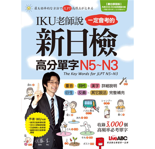 此次,我們的日語編輯小組和日文老師花了非常長的時間翻閱了大量的日語檢定相關書籍及歷屆考古試題,一個字一個字的過濾篩選,挑選了符合JLPT裡N5~N3級數程度的文字語彙集結成本書。將近3000個字彙,我們一一加上了漢字或外來語的源字、中譯、重音標線、詞性、同反義及衍生字、說明和用法等補充。為了讓讀者更能掌控字彙用法,我們在每個單字旁邊都加上符合N5~N3文法程度的日中例句,搭配適時補充的圖解衍生單字,讓讀者在最短的時間內快速有效地牢記住單字及用法。在每一個級數學習結束之前,還有一回針對言語知識(文字‧語彙)的模擬測驗,題型及題數皆仿照正式的日語能力測驗,幫助讀者先熟悉測驗方式,以期在正式測驗中能快速進入作答模式。最後,建議讀者們善加利用隨書附上的學習光碟及光碟裡的MP3。由專業日語老師錄製的日∕中單字例句導讀,即使讀者們身處在無法使用電腦或書籍的環境裡,也能藉由聽的方式背頌單字,非常方便。