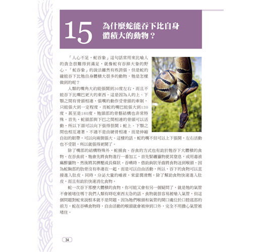 15. 為什麼蛇能吞下比自身體積大的動物?