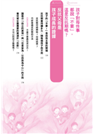 有人說:「父母是奠定孩子人格基礎的最大推手。」若是希望孩子堅強、獨立、樂觀、勇敢,就要從父母本身每天的思考和行動改變起。本書不僅提出教養的觀念,更透過教養孩子的過程中實際會遇到的問題來提出解決、落實的方法。例如:透過關愛讓孩子培養對自己的正向看待、依據孩子的個性採取不同的責罵方式、讓孩子透過與同儕的吵架學會忍耐力與協調性、藉由刺激孩子的好奇心培養出毅力與集中力……,提供父母許多值得參考的教養秘訣,也請各位新手父母與孩子一起學習、成長!