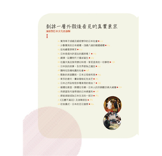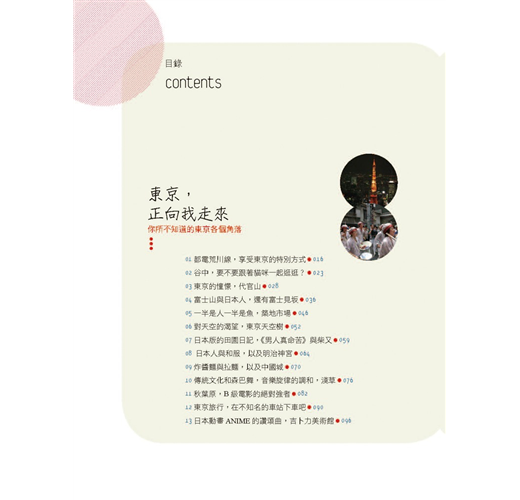 無論你是去過一、兩次東京,曾經在東京長住,甚或只透過日劇和新聞瞭解東京,你都將從現在開始,經歷一場最深入、最不一樣的東京文化體驗。