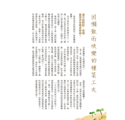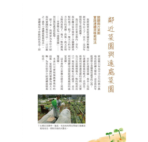 日本行之有年的連續混植栽培法,即使是小小一片菜園,也能持續達到有機、無農藥、大量、多元的蔬菜收成,而且聰明、輕鬆、省力!