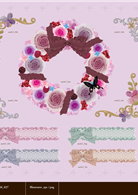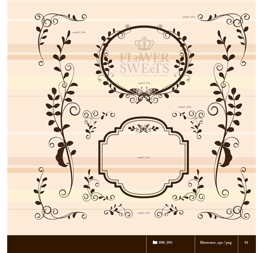 各種簡約風和華麗螺旋的邊框設計,可轉換不同色彩與特效,搭配蕾絲、緞帶和蝴蝶結設計,不僅可隨意組合、實用搭配,也讓花朵甜點主題更能完整地呈現出來,是令人忍不住驚呼「好可愛!」經典素材設計。