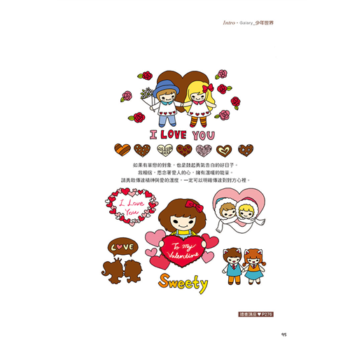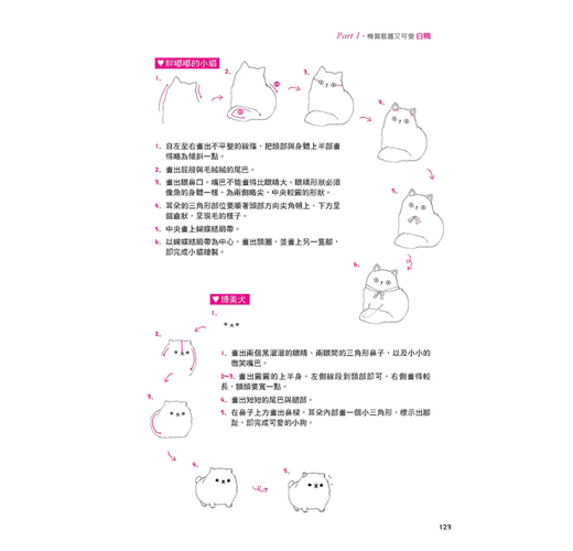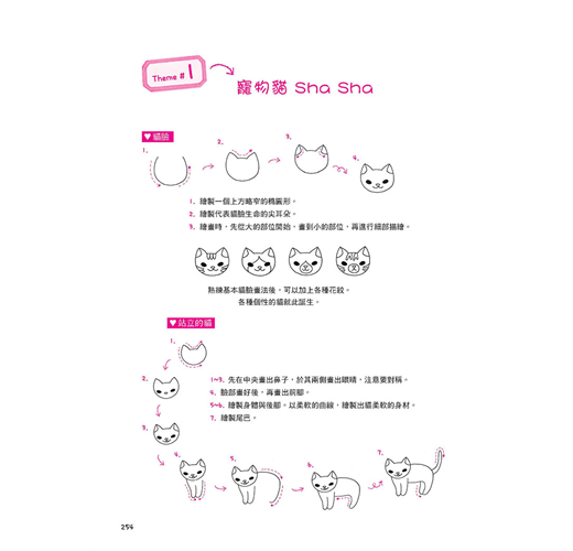 ★深入淺出示範包含各類單一圖形、構圖比例、完整主題繪圖的畫法,包括日常生活節慶、人物與動物、表情變化、日常生活物品擬人化、交通工具、創意字體……各類圖畫, 再自由塗上五顏六色的繽紛色彩, 可愛指數破表!
