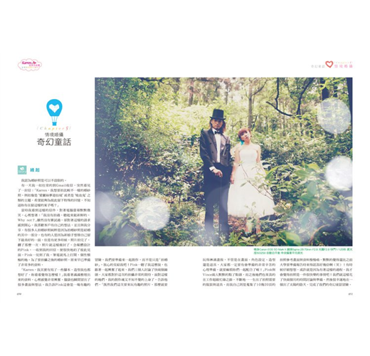 跟「Karren」以及經紀人「小包」開會的時候,她們告訴我:『在每次展開婚紗照的拍攝作業之前,Karren一定都會和新人打成一片,瞭解他們的「故事」,把他...