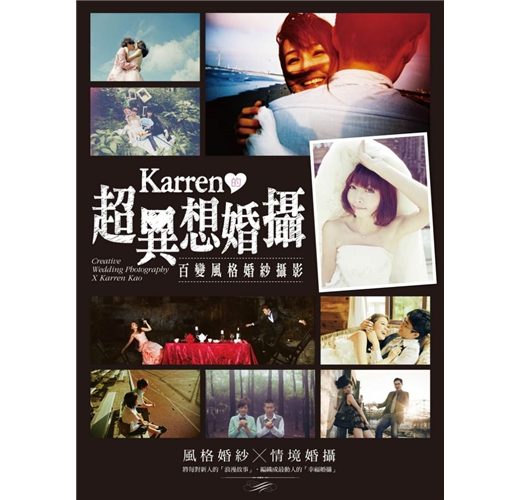 《Karren的超異想婚攝—百變風格婚紗攝影》以「婚紗」攝影為主要核心,與讀者分享Karren獨到的影像風格與拍攝手法。一口氣收錄8種不同風格的婚紗攝影,並且提供場景、服裝、器材、道具等各種技法教學。此外,更將藉由一段又一段的影像故事、拍攝歷程,引領眾人進入她奇幻瑰麗的異想世界,一窺每一張作品背後的秘辛與創作思維。