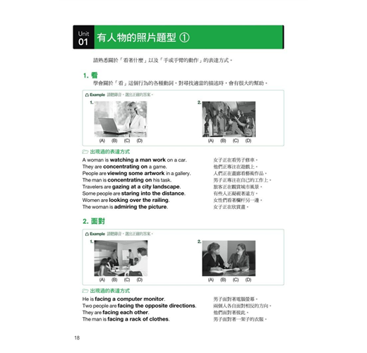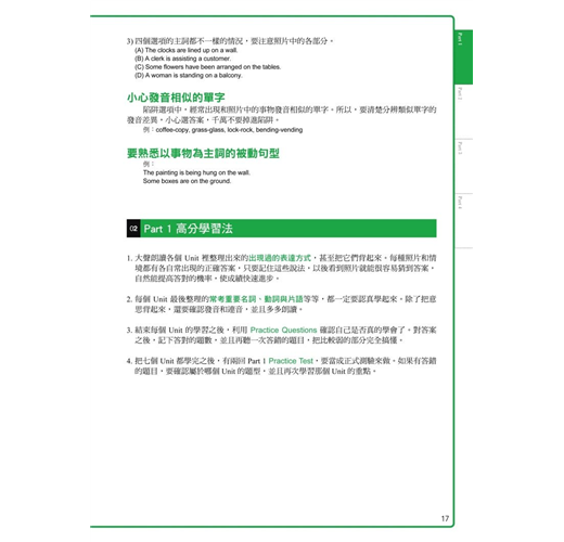 怎樣才能快速提升多益聽力成績?許多人建議看美國影集,聽 CNN、ICRT,接觸自然的英語環境。這固然是學習英語的正道,但對於想在短期內獲得高分的眾多考生而言,漫無目的地訓練聽力,根本緩不濟急!而且,就算是英語流利的高手,也常在多益考試中意外拿到低分,原因就是對出題模式不熟悉。事實上,多益的考試範圍雖然廣泛,出題模式卻相當固定。例如,Part 2 經常用單字的諧音來製造陷阱選項,也一定會出現用 Yes/No 回答 wh- 疑問句的錯誤選項;Part 3 每次都會有「為什麼打電話」的問題,而答案的線索總是會出現在「I’m calling to…」、「I’d like to…」的句型裡。不論你的英文實力如何,只要了解這些出題模式與得分關鍵,並且用大量模擬試題進行訓練,就有機會獲得比目前程度高200分的成績!