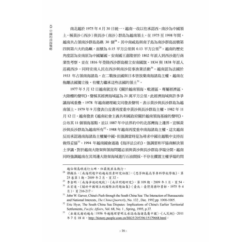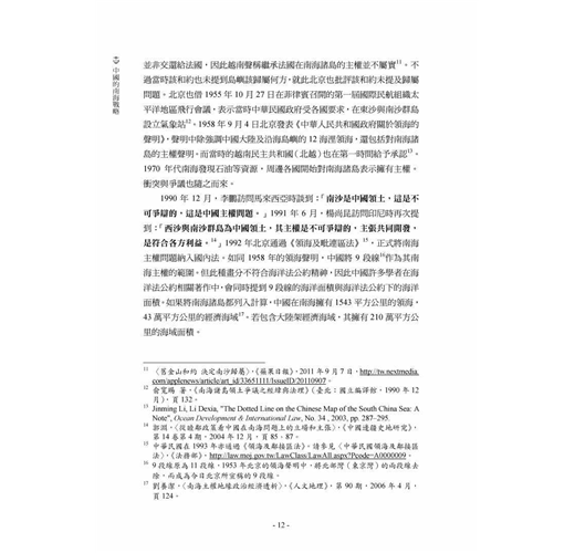 為什麼南海至今各國仍保持克制?從筆者大量的資料收集與密集的圖表中我們可以得知,從2011 年4 月至2012 年7 月,中國與南海各國就有多達53 次的官方互動。這顯示了雙方都希望以外交做為優先解決問題的途徑。作者點出這點,且歸納出中國對於南海問題的七大戰略手段。這七大戰略也可適用於其他周邊爭議海域問題,因此值得各方學者們品嚐其中奧妙。作者從時間、空間、面向三軸一體,突破以往相關書籍所沒有的格局。