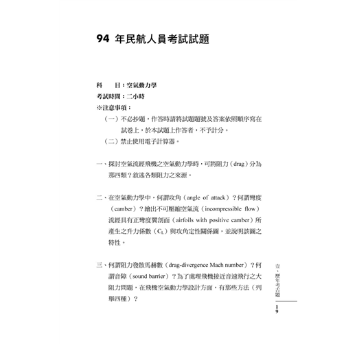 ◎ 市面上缺乏空氣動力學考試的考用書,這本書可說是第一本