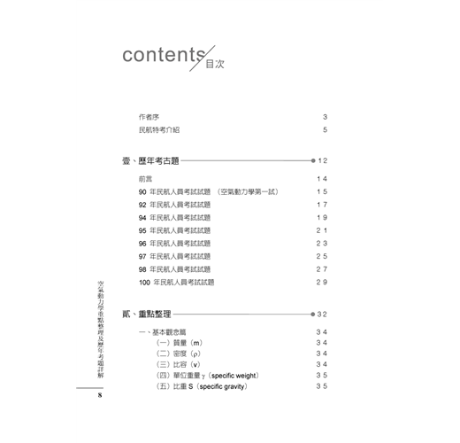 五、目前坊間民航特考考試叢(套)書均註明缺空氣動力學與飛行原理的考試用書,且因民航特考的考題並未公布答案。因此作者結合民航考題利用簡明的文字描述飛行的各種原理、飛機結構的運用以及飛行現象的解釋,並針對文科學生相關數理觀念缺乏的部份做重點加強與解釋。