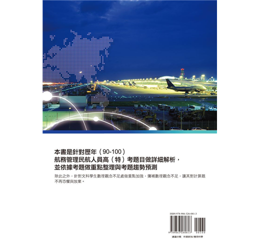 本書是針對歷年(90-100)航務管理民航人員高 (特)考題目做詳細解析,並依據考題做重點整理與考題趨勢預測,除此之外,針對文科學生數理觀念不足處做重點加強,彌補數理觀念不足,讓其對計算題不再恐懼與放棄。