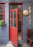 結束了市場的探險巡禮後,春怡老師帶著我散步到了Hutong Cuisine Cooking Studio。斑駁的暗紅單門襯著灰色砌磚牆的入口,在這條熱鬧滾滾的胡同當中看起來特別安靜。正當我一腳準備踏進去時,眼前的景象卻像《哈利波特》的神祕月台一樣魔幻,令我驚奇。原來,打開了這道小小的門後,竟藏了一個氣派的迎賓庭院,高聳的門上裝飾著銅獅子門環,這樣的設計完全隔開了街上的嘈雜聲,像置身市外桃源般寧靜;推開氣派高門的那一刻,我終於尖叫了:無敵漂亮優雅的超大四合院,中間擺著長長的木桌椅、草帽、藤籃,編織成串的蒜頭安安靜靜垂掛在牆上,木桌旁的陶製大缸裡,養著幾尾優遊的小魚,再抬頭一看,被徐徐微風吹散的落葉就這麼掉到了我的臉上。沒錯,這一刻我終於理解這裡為何被CNN選為世界十個最棒的料理天堂之一,因為周圍的一切實在是美得太不像話了。