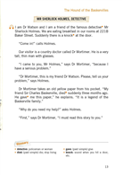 Doyle is born in Edinburgh, Scotland in 1859. He works as a doctor until 1891 but he has a passion for writing stories. In 1891 he decides to become a full-time writer. His first story is a novel called A Study in Scarlet. He then writes a series of short stories called The Adventures of Sherlock Holmes, which are published in instalments by The Strand Magazine. The public love them, and want to read more about Sherlock Holmes and his faithful friend, Dr Watson. Conan Doyle writes 56 Sherlock Holmes stories in total. One of the most famous and popular is The Hound of the Baskervilles.