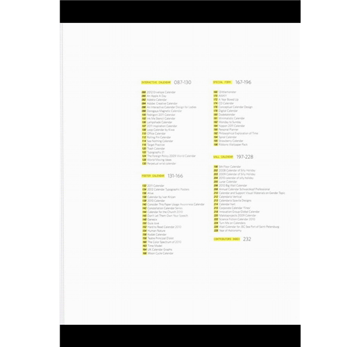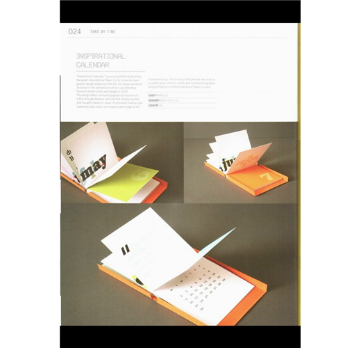 內容涵蓋書歷、檯曆、掛歷、卡片日曆、海報式日曆、互動式日曆等不同日曆設計專題,歷數112個全球傑出日曆創意設計經典案例;收錄作品或溫情懷舊、或發人深省、或詼諧幽默、或意趣盎然。在封面設計上,本書引入了羅盤式萬年曆的互動設計。以其做引,希望在你享受視覺盛宴的同時,讓這些奇思妙想成為你的創意靈感之泉。