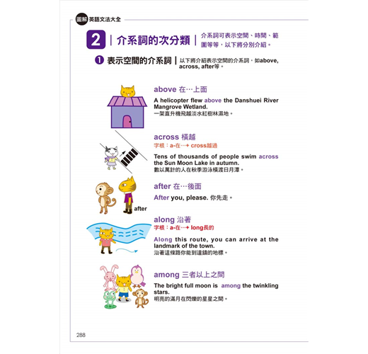 首創視覺引導輔助理解模式,每單元皆搭配精美彩圖,利用「圖像」、「情境」、「顏色」的概念輔助學習,快速理解文法規則。