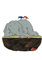喜歡惡作劇的大象挖了個陷阱,「啊哈,完成了。現在就等著看好戲啦!」牠躲在樹叢後,看什麼動物經過時會中計掉進去。一長排螞蟻安然走過去,大象有點失望;一隻兔子從陷阱上方跳過去,走掉了,大象的失望又多了一點點;……眼看兩隻鴨子就要中計了,地底下一群鼴鼠卻衝出來壞了好事,還讓陷阱變得一塌糊塗,大象正打算重整一下陷阱,結果居然「滂滂滂滂!」下起傾盆大雨來。雨停後,大象喪氣的看著已經完全不成樣子的陷阱,沒想到豬媽媽帶著豬寶寶走過來,於是那個無法嚇人的坑,變成動物們的……