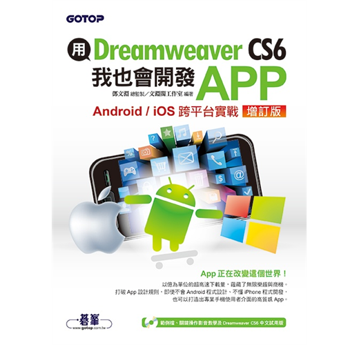‧除了在Android平台開發外,新增訂iOS平台開發解說,在Dreamweaver CS6一次開發,就能跨iOS、Android不同平台,讓你的App無遠弗屆!