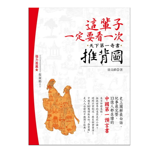 《這輩子一定要看一次,天下第一奇書推背圖》,係由國學、史學專家徐文祺先生所著,作者對《推背圖》中每一個「象」中所暗示的歷史人物、事件,有其專精的剖析與見地,令人動容。臺灣廣廈出版集團所屬知識家出版社,以探索文化新知的立場,重新確認《推背圖》的現代價值──「預言版歷史小說」,使原本艱澀難懂的預言奇書,不再虛無縹緲,變得真切、貼近人民,實為「這輩子一定要看一次」的好書──《天下第一奇書推背圖》。