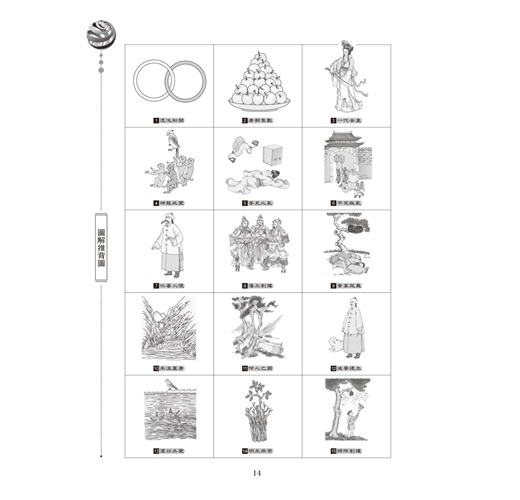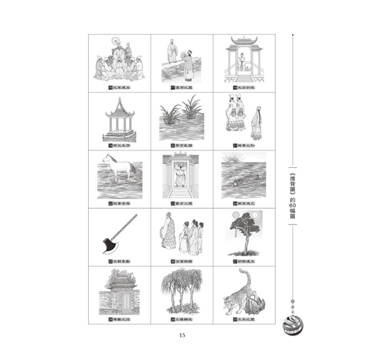 圖像:解釋每一幅圖中各事物所暗示的人物、事件,讓人看圖就可知其中暗藏的玄機。