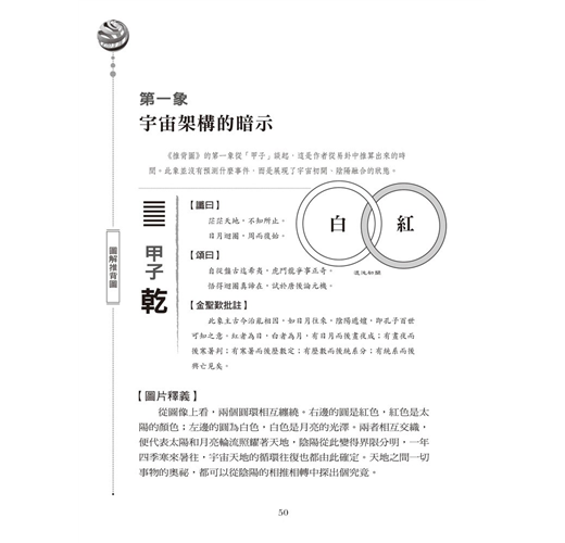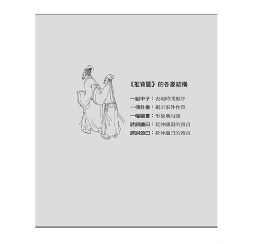 本書完整編入了「金批本」《推背圖》中的「圖像、讖曰、頌曰、卦象、金聖歎批註」等部分,另外增加了以下四部分,讀者可以借此從一個更清晰的視角來看這本奇書。
