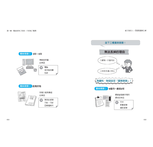 工作上許多時候,都需要我們瞬間做出判斷,「捨‧活‧續整理術」也是一樣,為了要丟還是要留而猶豫不決,就是浪費時間。本書為判斷「要丟還是要留」設定了一個底限,就是60秒。