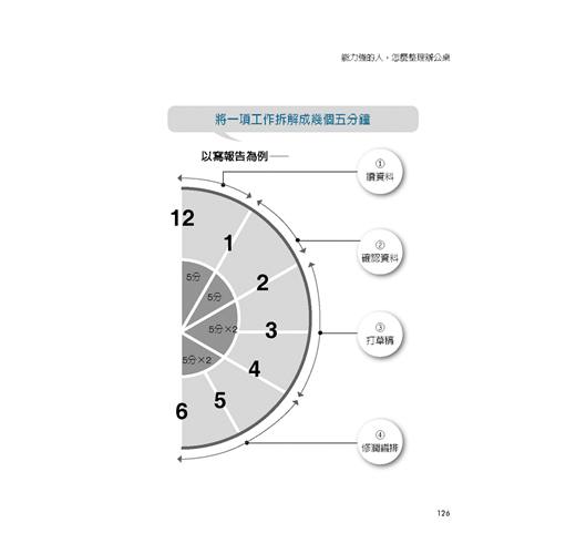 別花太多時間在手帳上/手帳,該怎麼挑選?/使用手帳的6大規則/桌上有「管制塔」,就能嚴守工作期限/一進辦公室,就知道今天的工作順序/把工作拆解成幾個5分鐘任務/下定決心:今天要準時下班/用零碎時間終結零碎工作/公事包如何整理,可成為行動辦公桌/點讀法──瞬間讀取重點的祕訣/要速記,但也要讓別人看得懂