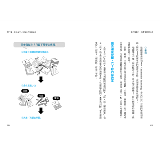 會整理自己腦袋的人,自然會把整理的本事,反映在辦公桌上;反之亦然,會整理辦公桌、整頓工作環境的人,自然就會整理自己的腦袋。