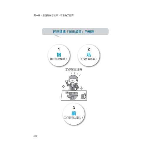 運用本書的「捨‧活‧續整理術」來整理工作文件、筆記、電腦、金錢和時間,除了能提升你的工作能力,也一定能全盤改變你的人生。