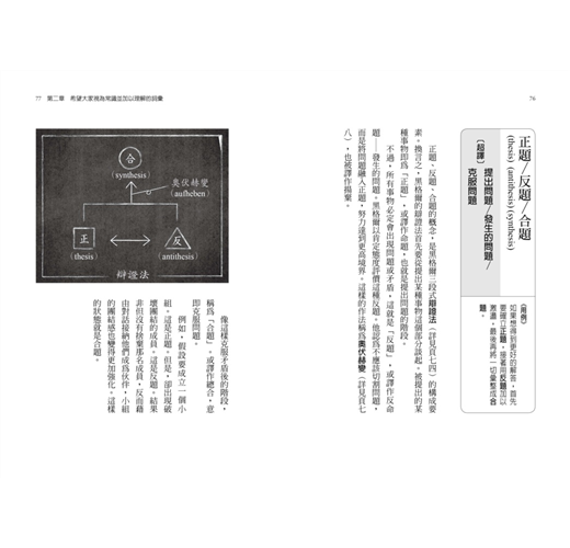 《例句》如果想得到更好的解答,首先要確立正題,接著用反題加以激盪,最後再將一切彙整成合題。