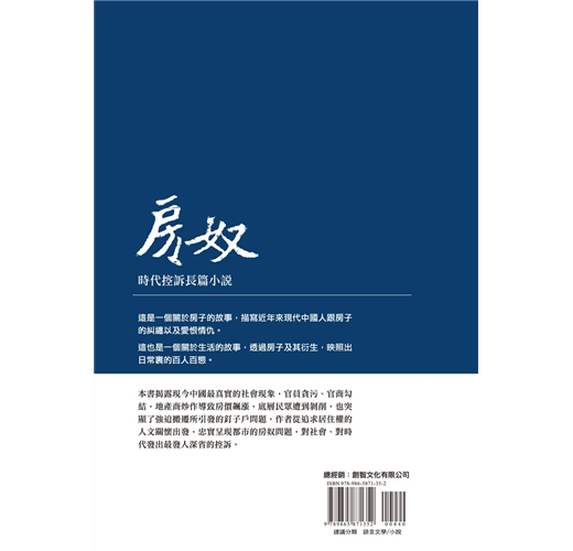 本書揭露現今中國最真實的社會現象,官員貪污、官商勾結,地產商炒作導致房價飆漲,底層民眾遭到剝削,也突顯了強迫搬遷所引發的釘子戶問題,作者以追求居住權的人文關懷出發,忠實呈現都市的房奴問題,對社會、對時代發出最發人深省的控訴。