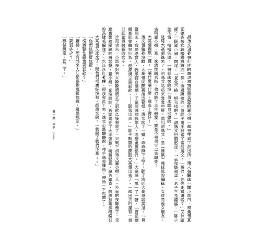 房門就在此時「砰」地一下被踹開的,一夥陌生人破門而入。兩人被嚇了一跳。羅小娟急忙抓過床單裹遮著赤裸的身子。胡逸文怒問他們是什麼人。一個大高個趾高氣揚地說他們是派出所聯防隊的,查賣淫嫖娼,要他們把身份證拿出來。胡逸文說:「你們看清楚,我們是情侶,誰賣淫嫖娼了?」大高個喝道:「甭囉嗦!快拿身份證!」胡逸文只得穿上短褲去拿身份證,羅小娟裹著床單驚恐地望著眼前的陌生人,身子顫抖不停。大高個看過身份證覺得沒有問題,又問他們要暫住證。胡逸文說:「我們沒有暫住證,也不知道在哪辦。」大高個說:「沒辦暫住證?──那跟我們去派出所!」胡逸文叫起來:「我們沒惹事沒犯法,憑什麼去派出所?」大高個一手電筒砸過來,「囉哩叭嗦!穿上衣服跟我們走!」