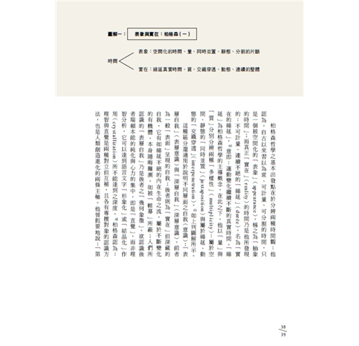 本書每章首頁皆選錄藝術家之圖、文,用以突顯各章論旨;特別的是:「緒論」首頁摘錄塞尚,意在銜接先前的論述:塞尚曾以雙關語「希伯來領袖」與擬似「11R」的符號,分別隱喻當時為「猶太領袖」的「HB」(柏格森)。總之,哲學論述與藝術創作彼此互相激盪,豐富了文化之內涵。著名學者豪瑟(Arnold Hauser)於《社會藝術史》(第四冊)中說:「雖然不見得經常符合其原義,但我們經驗到柏格森式時間觀念,諸如其在電影、小說,以及現代藝術所有類型與潮流中的應用。」