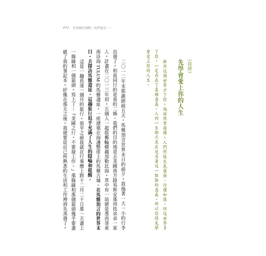 2012年末,我拖著一大一小的行李出發了,在馬雅預言的世界末日,去探訪馬雅遺址,這趟旅行似乎充滿了人生的隱喻和提醒。