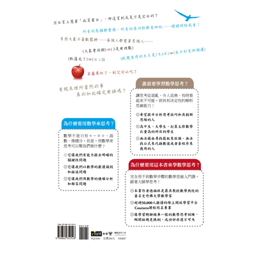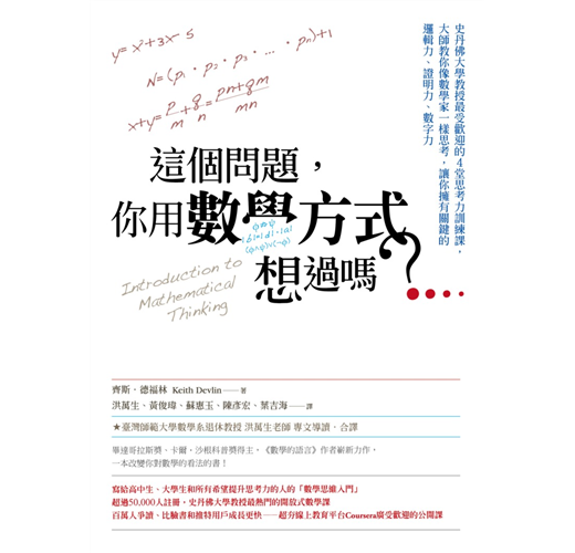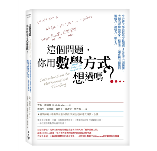 他在知名線上開放課程平台Coursera所開辦的「數學思維入門」課程,吸引了全球超過50,000人爭相註冊,本書即是針對協助培養「以數學方式思考」的能力所寫的專書。