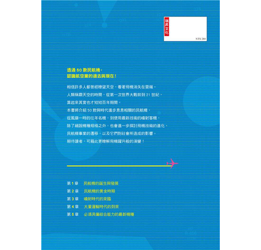 本書藉由50款與時代進步息息相關的民航機,詳細敘述航空業的發展史。期待讀者,可藉此更瞭解飛機躍升般的演變!