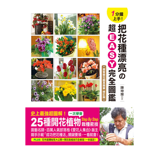 至於這本《把花種漂亮的超EASY完全圖鑑》,之所以會以「盆花」做主角,主要就是因為教學的過程中,有太多的人反應過,從花市買回來的花幾乎都無法順利存活到第二年,甚至買回家沒多久就死了,因此,這本書特別以花市裡的盆花為主要的對象,教大家以最正確的方式,將花市買回來的花,做最佳的處理,如此一來,不但可以延長它的花期,還可以讓它開得更美、更有生命力。