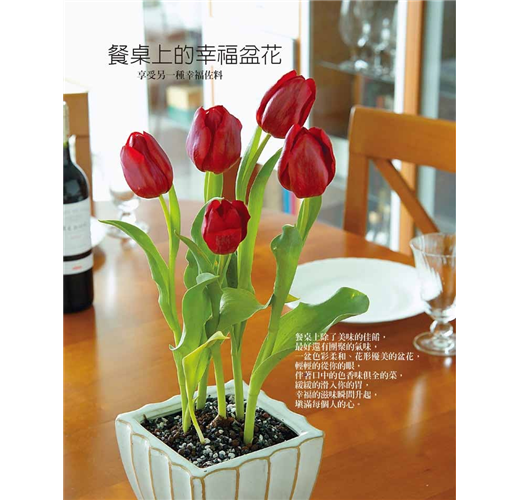 知花、賞花、用花,這個三環一體的結構,讓人產生親近花的緣由,透過本書「小觀念大學問」的單元,就會知道想要種植出怎樣的花,便要怎樣的栽。從選對植物、小心運送,到體檢植株,再透過妥善細心的栽種,就能讓植物擁有健壯的體質,相信如此循序漸進,花一定可以長得非常好,也會於眾人期待的時刻中,綻放最美麗容顏,發出最幸福的聲音。