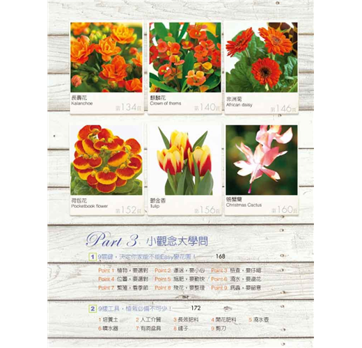 本書中點精髓內容「栽種步驟大圖解」 ,由陳坤燦老師親自教導,「Step by step」一步驟搭配一照片,給讀者最清楚、詳細的教學。此外,每篇附有的「QA大哉問」,讓種花變得超簡單。
