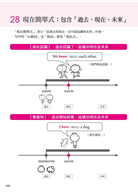 文法觀念融入生活常用英語,先導入「圖解、時態時間軸」,掌握「學文法」和「說英語」的關係。再進入「文法觀念結合生活真實英語」的完整舉例,逐一印證並體會文法的影響力,每單元安排兩頁的圖文解說。
