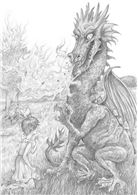 我發現有兩隻小東西坐在大理石金魚的尾巴上,她們和鉛筆差不多高,長得漂亮極了,應該是妖精、仙子或精靈之類的吧。她們看起來像人類,只不過有虹彩色澤的羽翼,頭髮的顏色則像冰凍果子露。