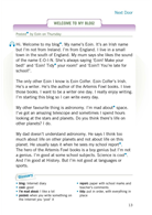 Hi. I’m from Scotland but I live in Barcelona, Spain. I write magazines and books for teachers and students of English. I love music. I play the guitar and write songs. So I write songs, stories, books and magazine articles.