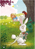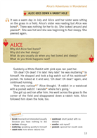 It is a hot afternoon and Alice is bored. She follows a White Rabbit down a rabbit hole and arrives in a strange place called Wonderland.