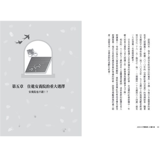 這本書強調六十歲是人生重要轉捩點,內容簡要、文字清楚、觀察深刻、建議具體可行。此外,翻譯的功力高,使讀者容易閱讀。全書八章的主題大致是第一章談「老本」、第二章與「老身」有關、第三章從人生旅程的角度談「老伴」,第四章分析快樂生活的關鍵並提醒「老友」的重要,第五章分享「老居」,包括安養機構。第六章主題是「終身學習」,第七章是「面對死亡」的生死觀,第八章是「傳承」。弘兼的專長是漫畫,不習慣長篇大論。我是學者,無法以漫畫的圖像來表達,因此用比較詳細的內容寫這篇序言。我大致依照上述的八個主題,一面介紹弘兼的精彩觀念,一面論述該議題相關的專業知識及研究成果。