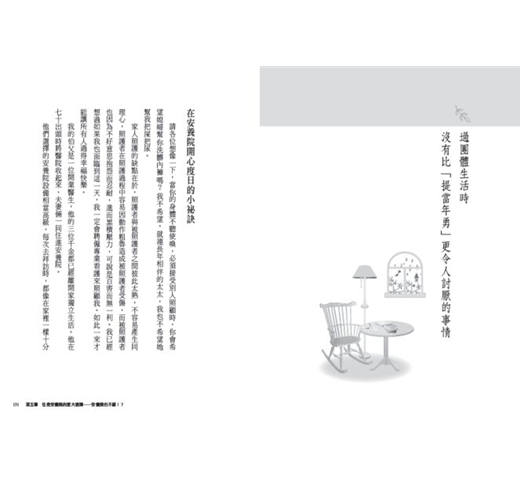 為了寫作,我大量閱讀。對於各種老年議題與著作,充滿興趣。感謝暖暖書屋(紅通通出版社)邀請我為此書寫序,使我得以先睹為快,也累積日本作家對高齡議題的觀點,更為自己的老年生涯有多些心理準備。