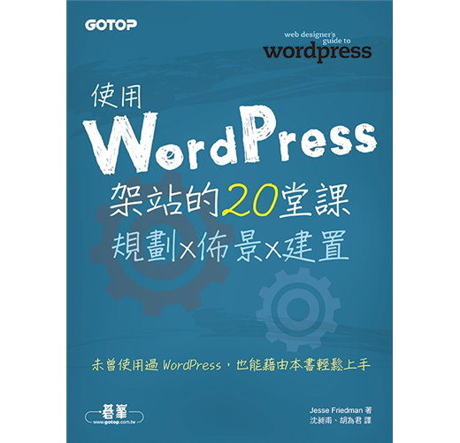 「這本書以平易近人的方式,帶領您精通WordPress。」—《The Web Designer’s Idea Book》作者Patrick McNeil