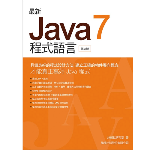 本書不僅僅希望讓讀者學會可以正確編譯與執行的 Java 程式, 也同時希望讓讀者瞭解良好的程式設計方法。因此, 在內文中, 處處可見各種語言元素的變化用法, 以及軟體設計的邏輯思維。