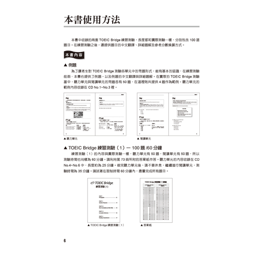 本書內容均依照ETS官方製作的試題標準型態編寫,CD內收錄的聲音亦完全比照正式測驗規格,對考生而言,是標準考試的有效練習工具。